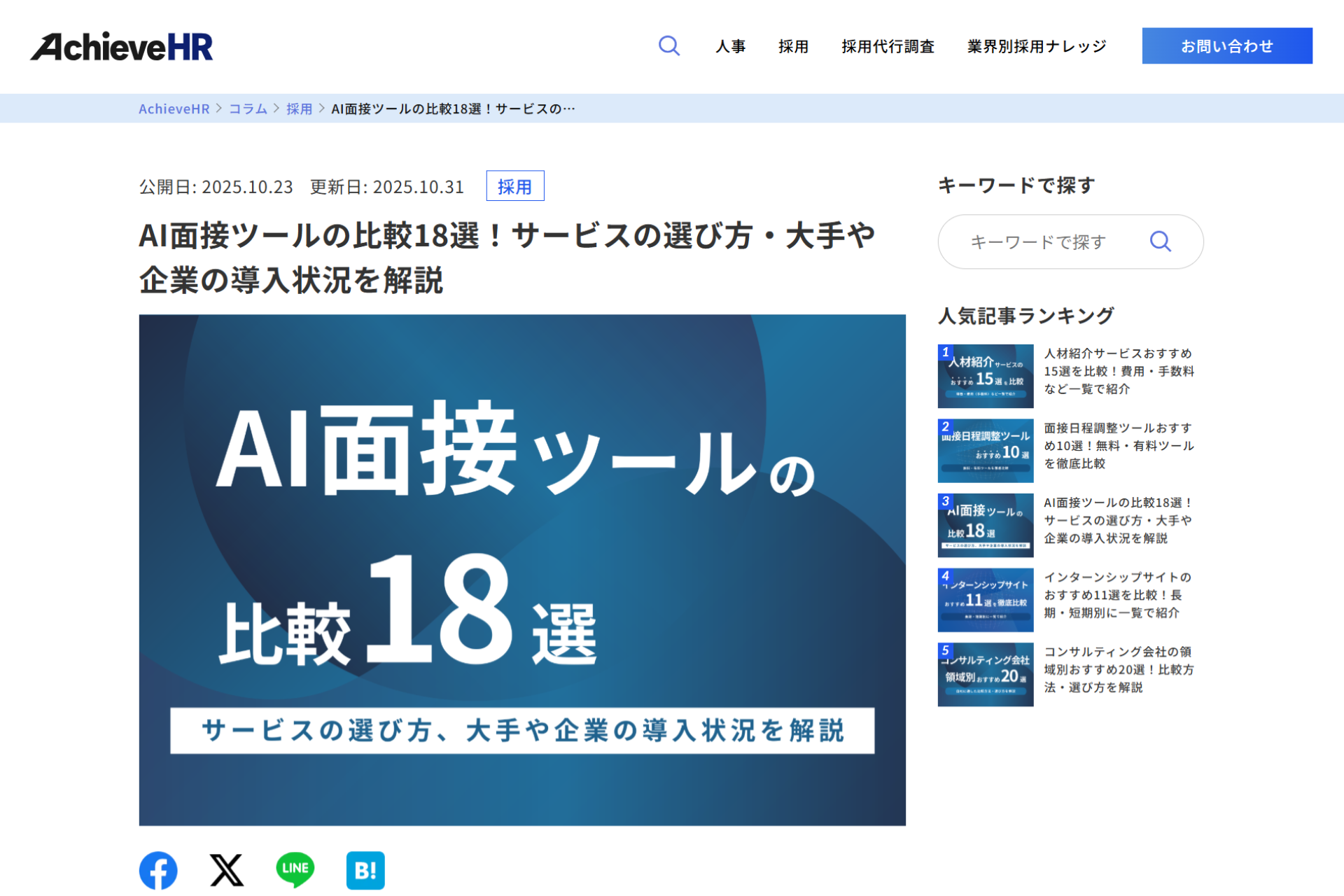 紹介ページ:AI面接ツールの比較18選!サービスの選び方・大手や企業の導入状況を解説